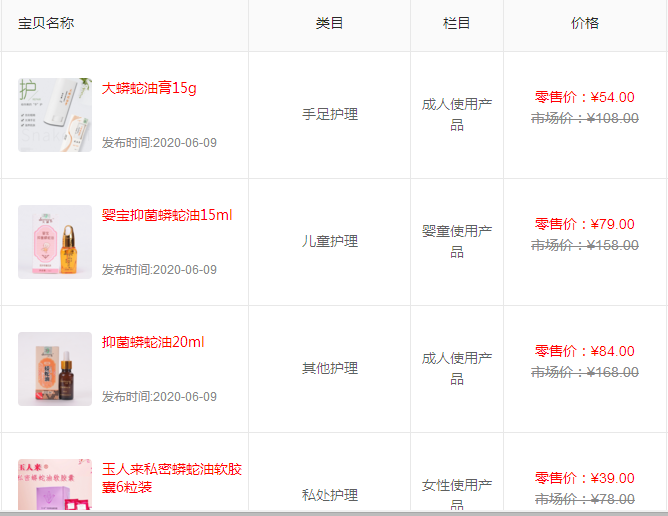 蟒蛇油产品:请认准 大蟒、海岛龙油、东盛弘、玉人来 几个商标