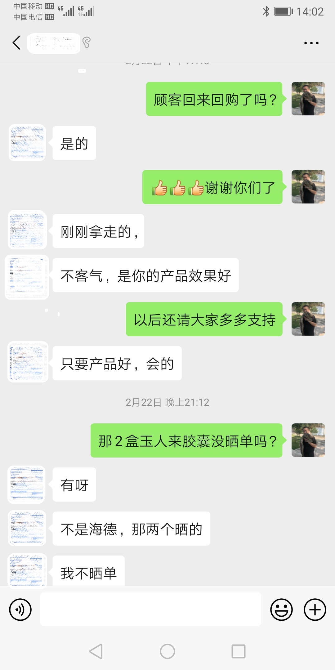 案例2、海南商务厅组织的展销会上结识的朋友的反馈